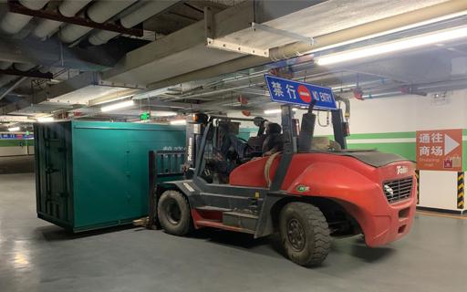 靜音發(fā)電機組進入地下車庫為商場提供電力保障